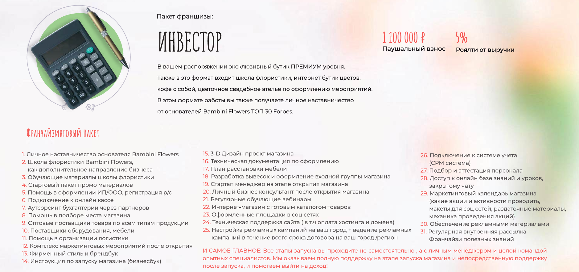 - Личное наставничество основателей Bambini Flowers (ТОП-30 Forbes).