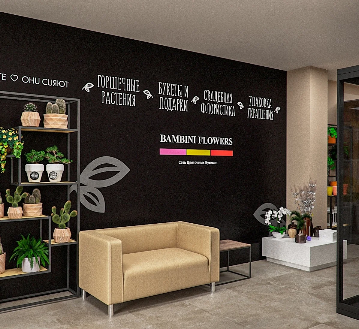 - Разработка 3D-дизайн-проекта бутика, план расстановки мебели, смета на оборудование;