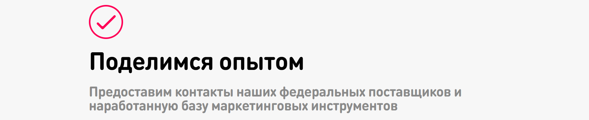 - Эксклюзивность: Гарантия единственного представителя бренда в регионе (кроме Москвы, СПб, Казани);