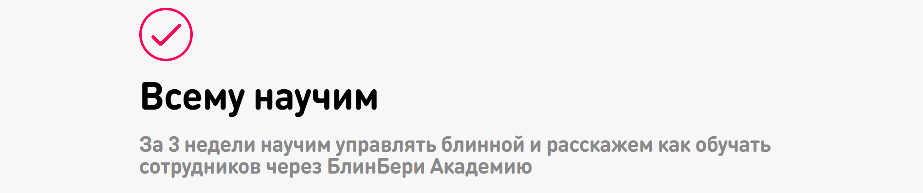 - Обучение сотрудников: Доступ к «Академии БлинБери» для обучения линейного персонала (без учета проезда и проживания).