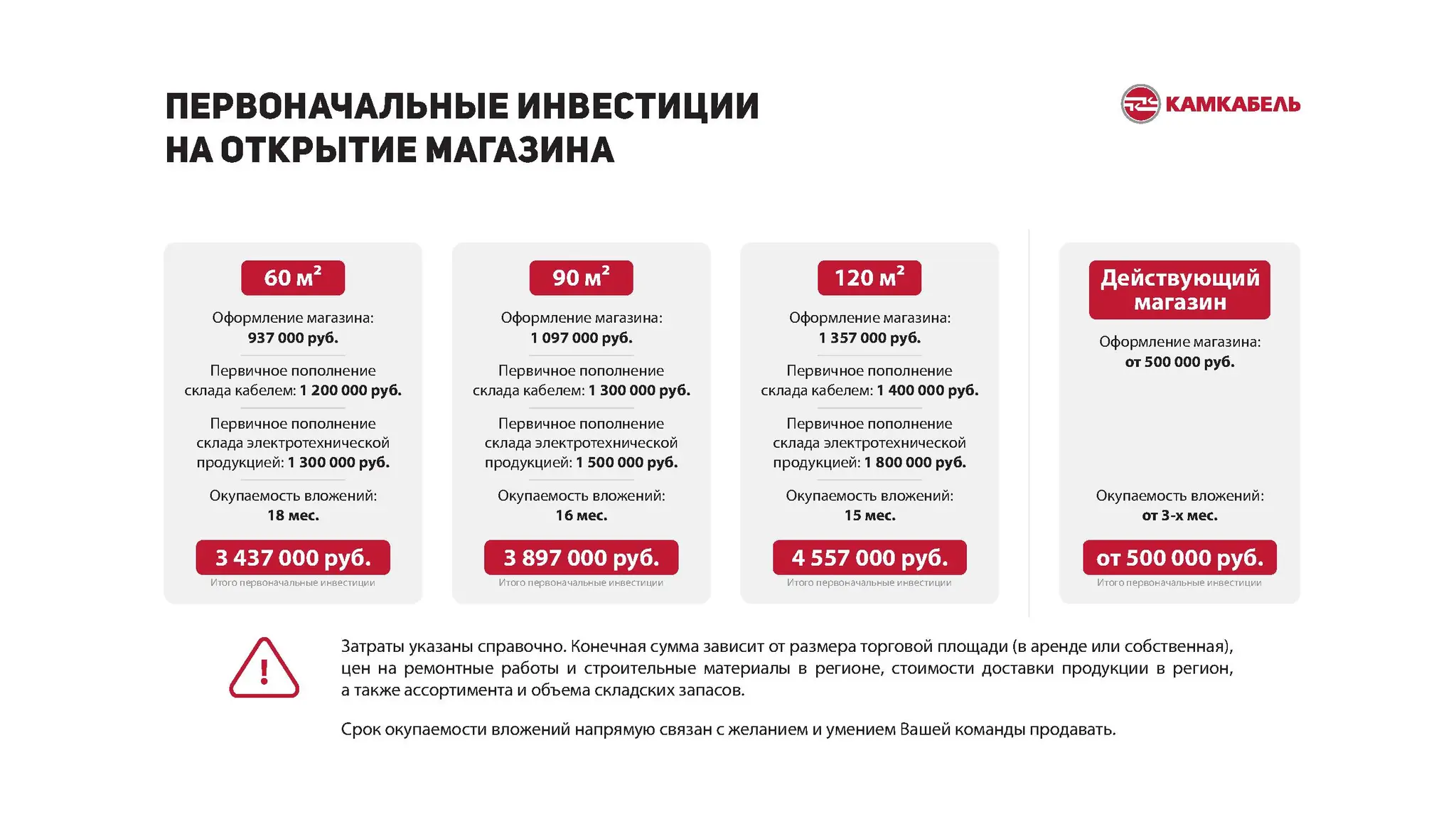 - Диапазон инвестиций: от 800 000 до 1 200 000 ₽;