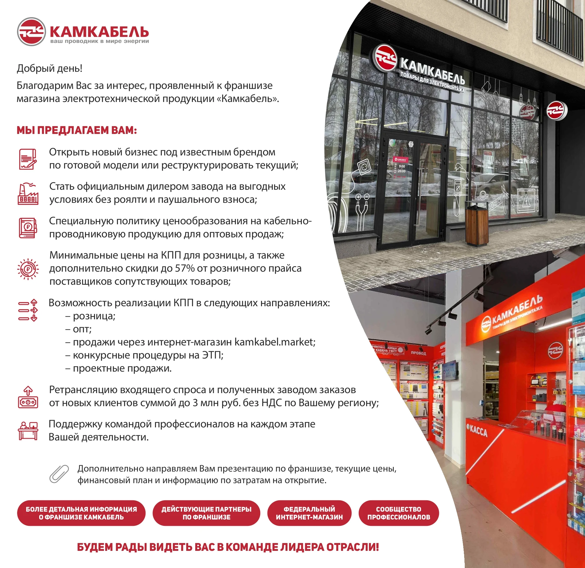 - Высокая маржинальность: Закупка кабеля по ценам завода + скидки до 50% на сопутствующие товары;