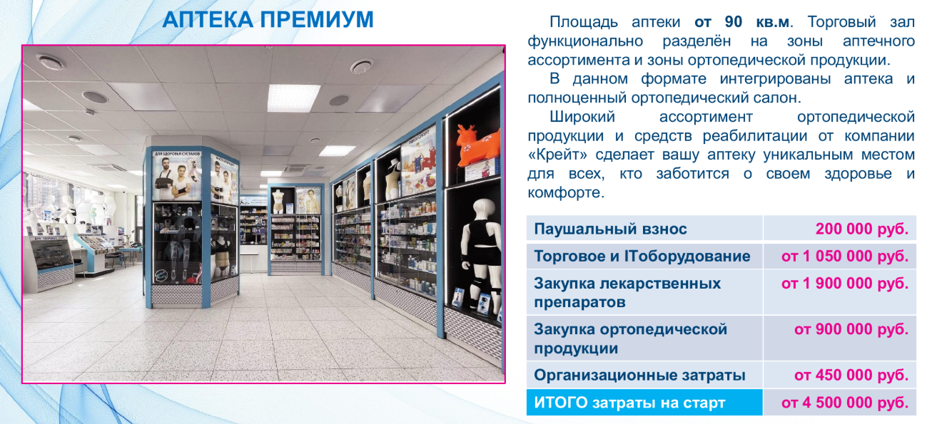 - Уникальная гибридная модель: Сочетание аптеки и ортопедического салона дает рост прибыли на 8% по сравнению с обычными аптеками;