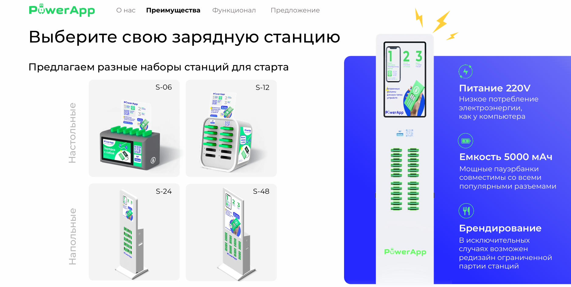 – Автономные зарядные станции PowerApp (количество слотов: 6, 8, 12, 24, 30, 48 — на выбор);