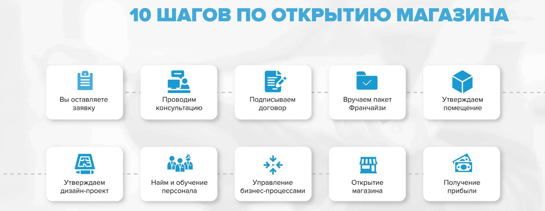 - Поддержка на всех этапах: От выбора помещения до операционного управления.