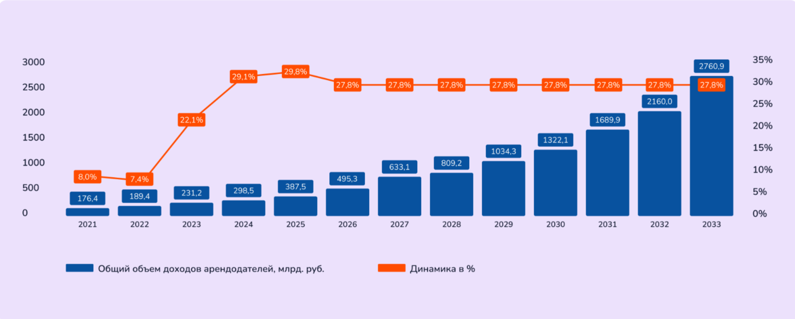 Общий объем доходов арендодателей (2023): 231,2 млрд ₽