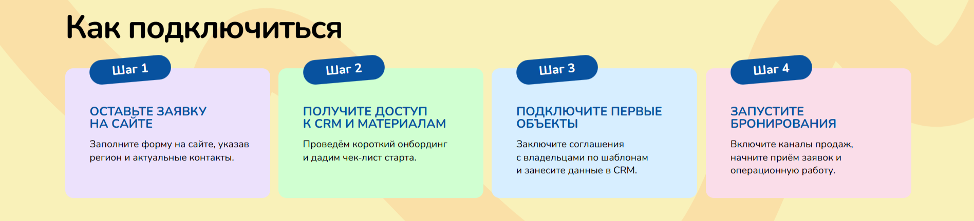 - Доход от сервисных услуг: Партнёр может оказывать дополнительные услуги (уборка, контроль состояния, хозработы) через платформу и получать за это оплату.