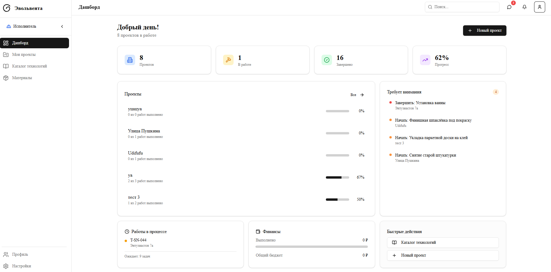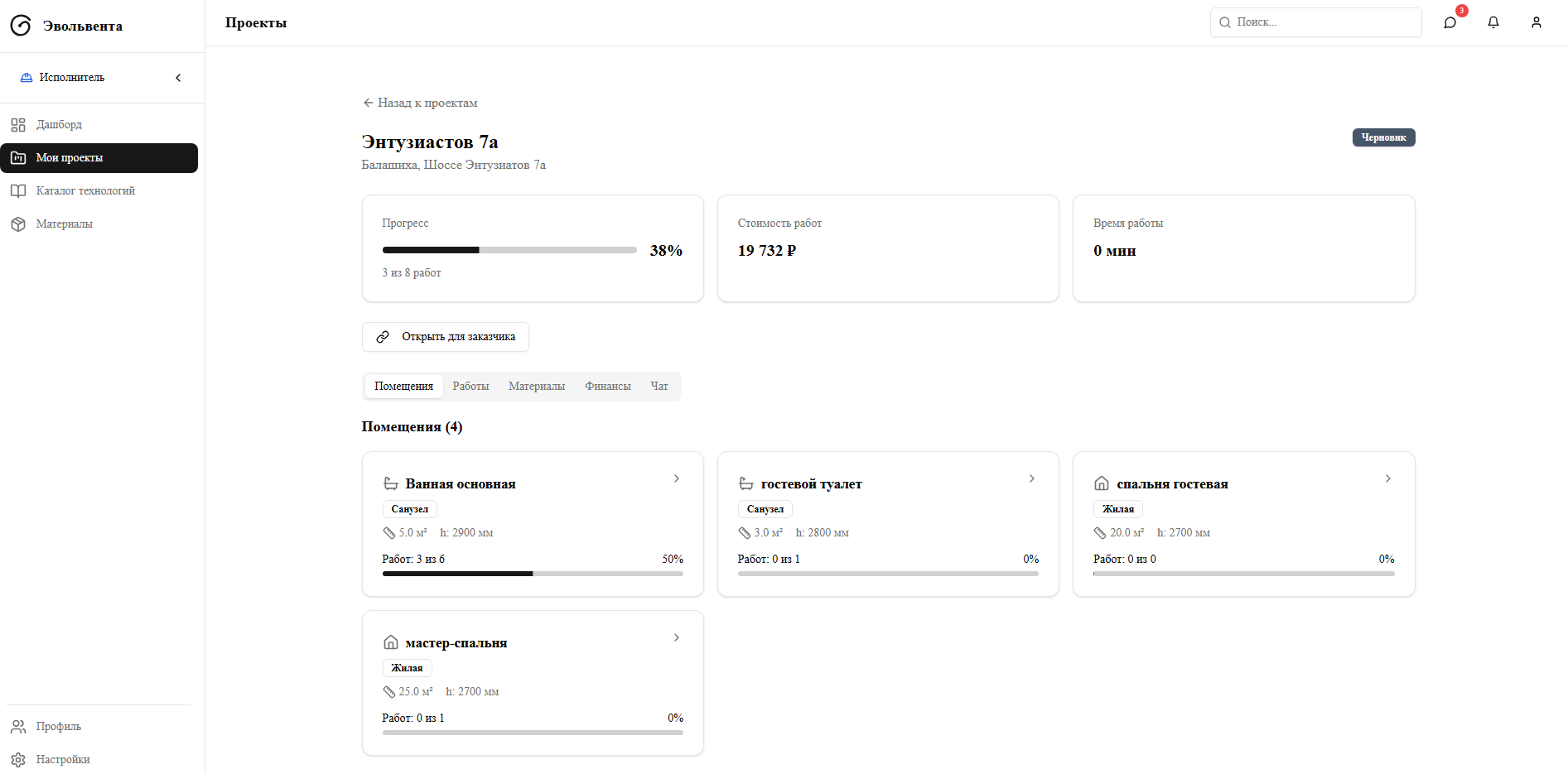 Эвольвента - это платформа, которая отражает реальный процесс ремонта в цифровом виде. Она не заменяет мастера и не навязывает свой процесс, а берёт то, что уже происходит на объекте, и делает это прозрачным, структурированным и понятным для всех участников.
